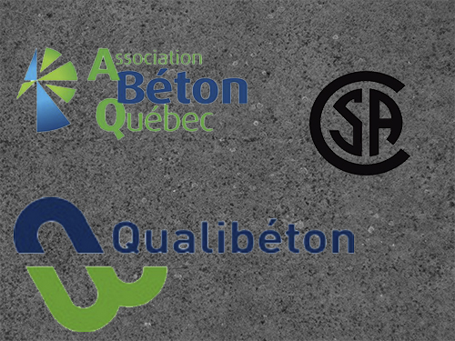Les produits tel que les balcons, perrons, pilliers et bases sont fait avec du béton certifié Qualibéton et CSA.